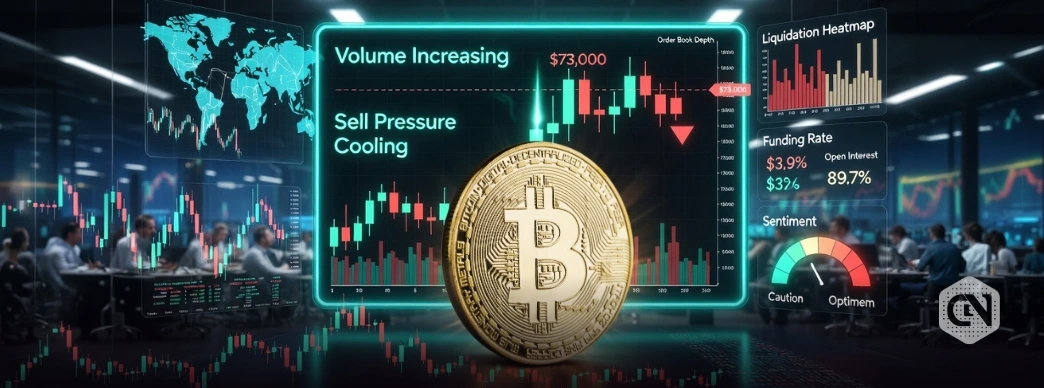 O Bitcoin recuperou brevemente o patamar de US$ 73.000, aliviando os temores de uma correção mais profunda no mercado. O movimento é impulsionado por fortes fluxos de entrada nos ETFs, embora o aumento da volatilidade traga riscos crescentes de liquidação para posições alavancadas.